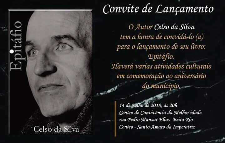 Egresso do curso de Turismo da FMP Celso da Silva escreve livro intitulado “Epitáfio”. O lançamento será no dia 14 de julho de 2018 às 20 horas no Centro de Convivência da Melhor idade de Santo Amaro da Imperatriz. Vale a pena conferir.